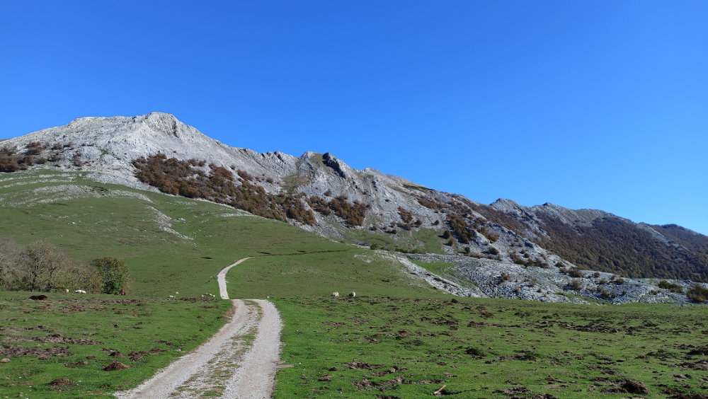 Seguiremos en todo momento el GR, pasando por las laderas de las cimas cercanas de Milpiribil y Oinbakoitz, transitando por el límite territorial entre Álava y Gipuzkoa, marcada por varios hitos de piedra.