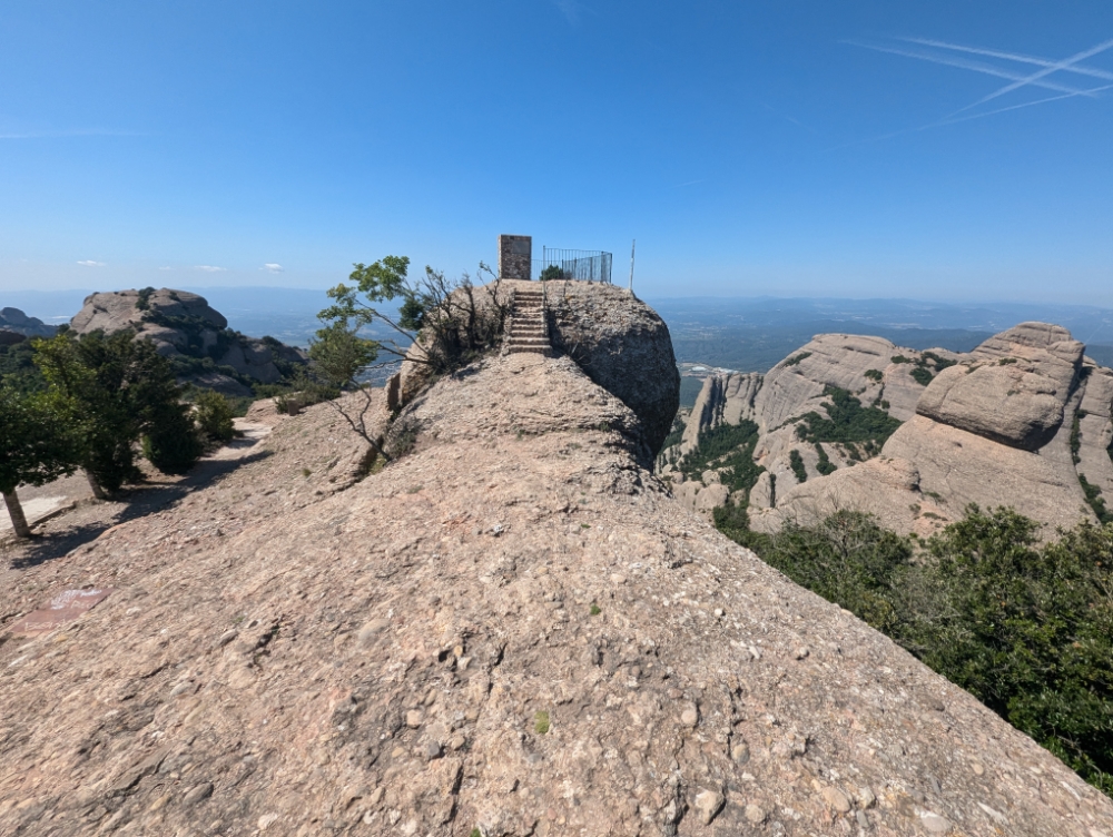 Sin pérdida, subimos las escaleras, pasando junto Mirador de Verdaguer. Y subimos hasta la cima de Sant jeroni que está ocupada totalmente por un gran mirador con valla metálica.