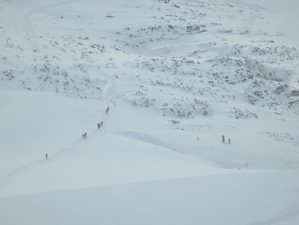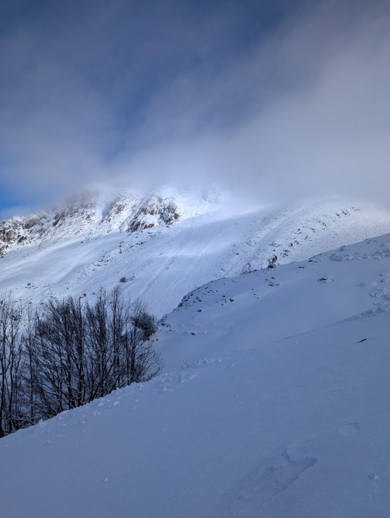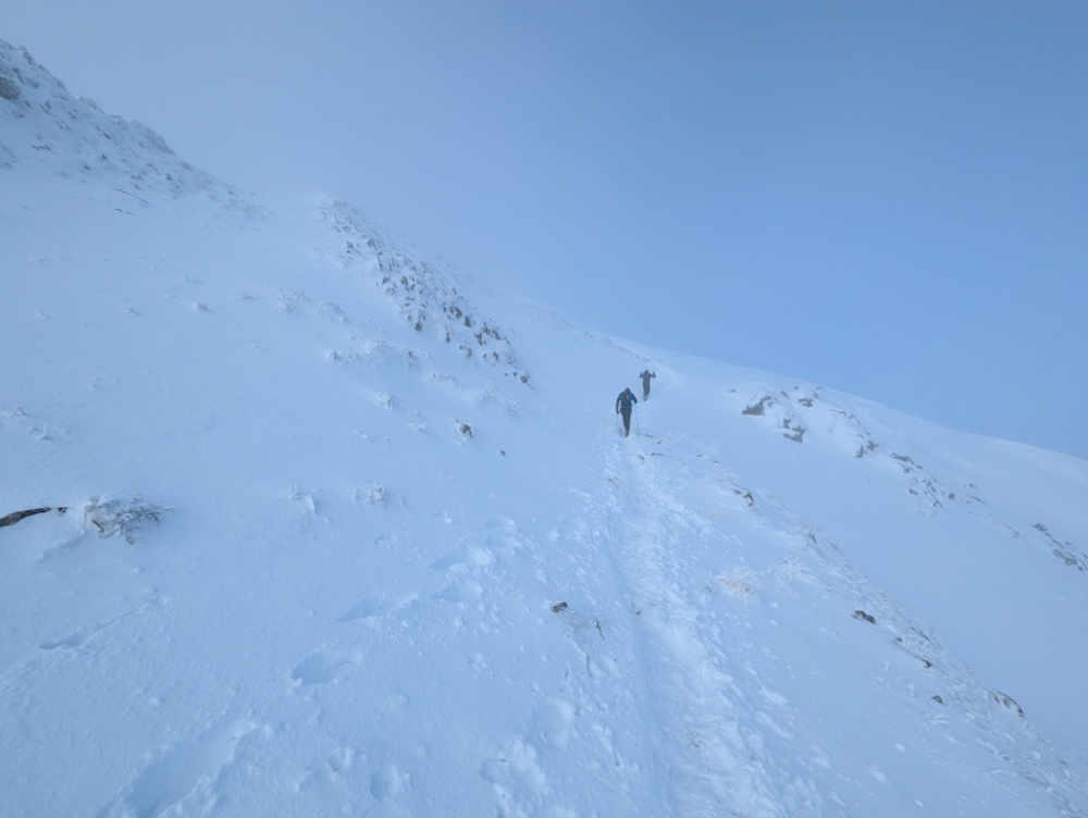 Con nieve el esfuerzo es considerable pero ascendemos a ritmo tranquilo y constante.