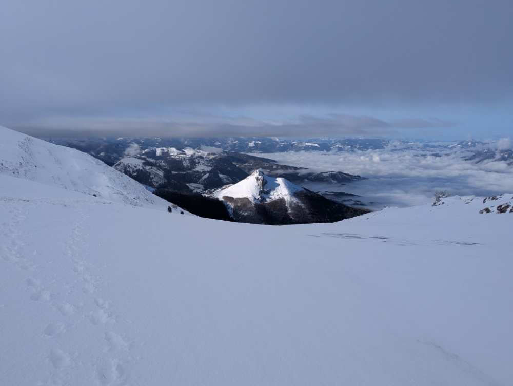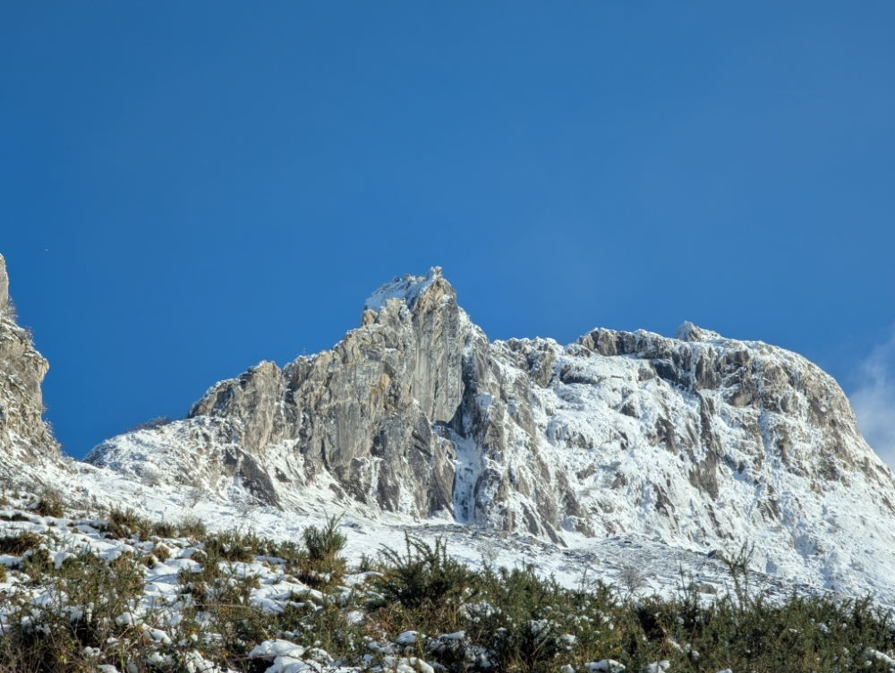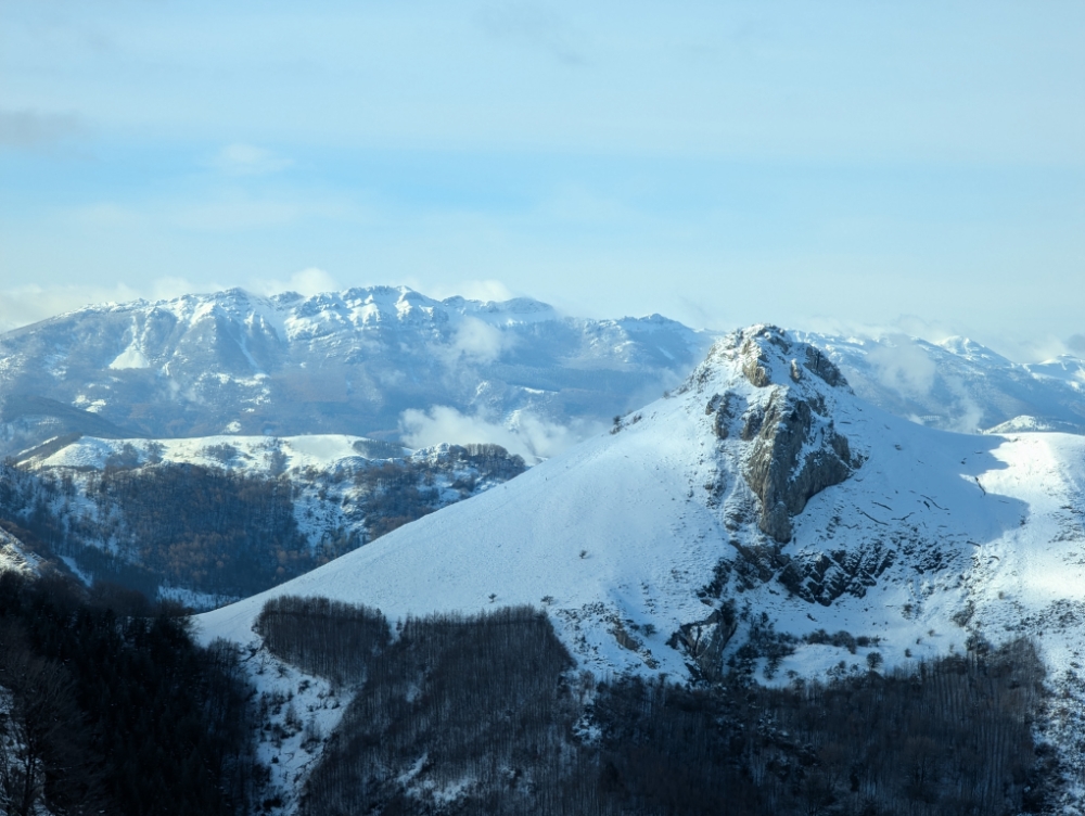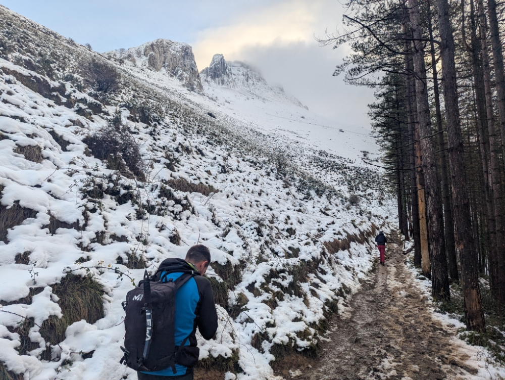 Pero nunca lo habíamos hecho en modo invernal, así que en la primera nevada de la temporada nos acercamos para ascenderlo por la ruta normal, pero tomando el atajo de Tximista.