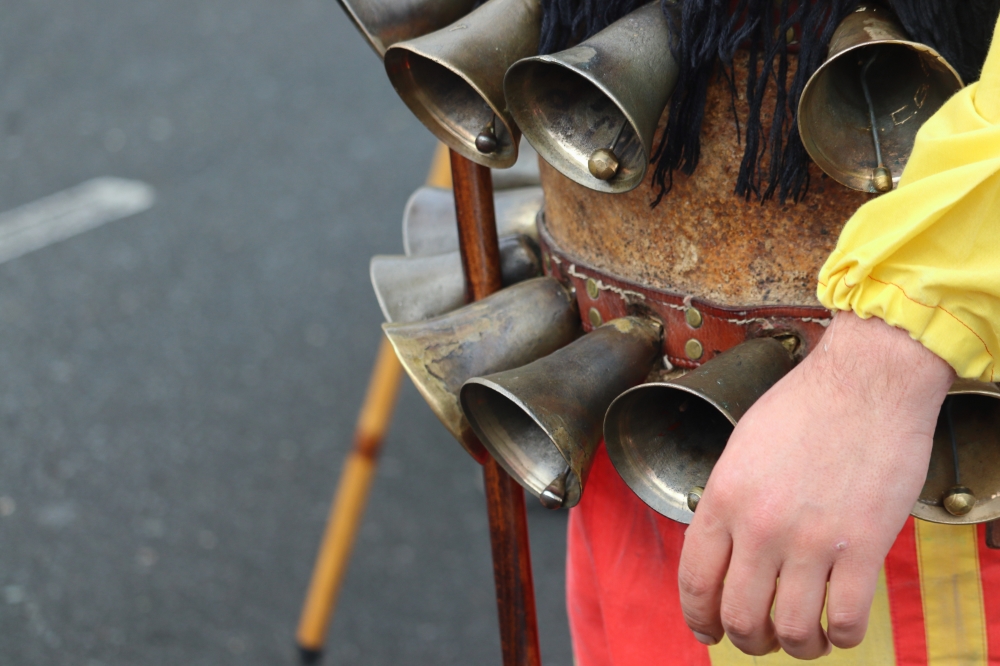 - Campaíñas: En un cinturón de cuero ancho penden campanillas de ganado que son recogidas en diferentes puntos de Galicia y la Peninsula. Hay diferentes cintos siendo el principal de 25 campaiñas. Aunque también tenienen de 23 y 22 (para los adultos) y de menos cantidad para los niños.