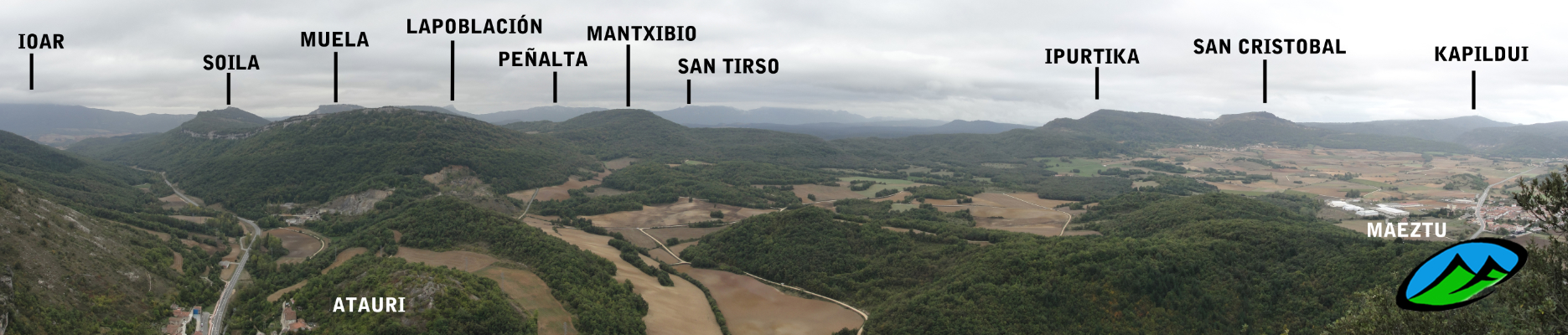También podremos acceder a la parte inferior de la Peña por una escalera metálica junto a dicho buzón. Desde esta cima podemos otear el pueblo de Atauri, el parque de Izki, con Soila y la Muela como altivas proas y la sierra de Cantabria al fondo.