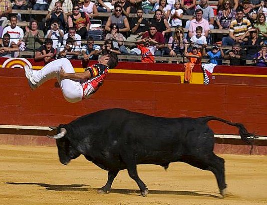 En España existen los Recortadores, los cuales se enfrentan a los toros realizando recortes, saltos y quiebros para evitar al toro acercándose al máximo, no sufriendo el animal en ningún momento.